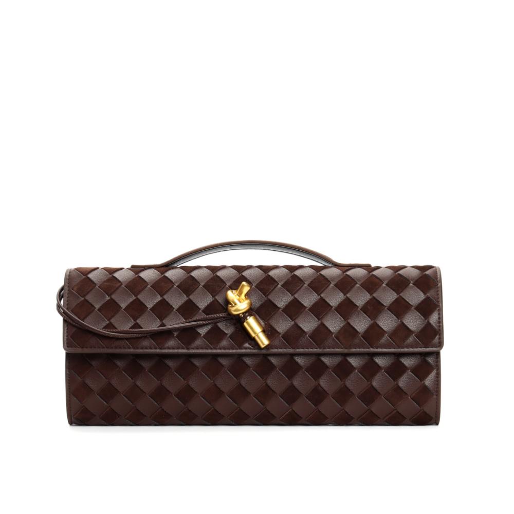 ارتقي بإطلالتك مع لونق كلاتش انديامو باللون العودي الفاخر، الحقيبة التي تجمع بين الفخامة والعملية لتناسب كل مناسباتك، تمامًا كما في أروع حقيبة يد كبيرة.