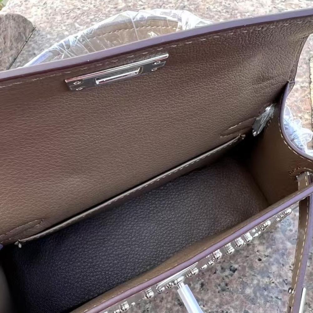 تألقي بإطلالة راقية مع شنطة كيلي ميني باللون الكاكي، التي تجمع بين التصميم الفاخر والحجم العملي المناسب للمناسبات اليومية والخاصة. هذه الحقيبة الأيقونية تعكس الأناقة الكلاسيكية بلمسة عصرية، مما يجعلها خيارًا مثالياً لكل عاشقات الفخامة.