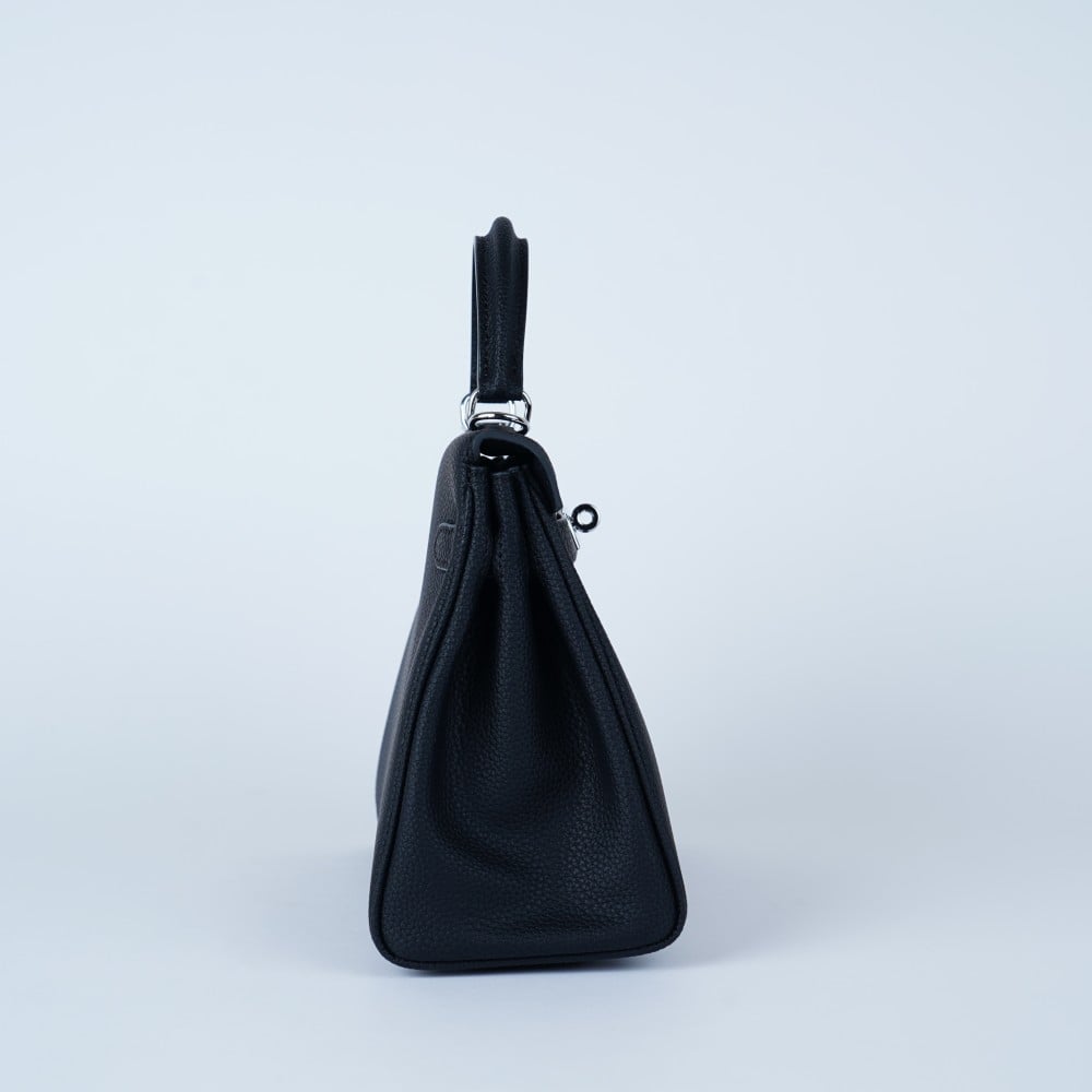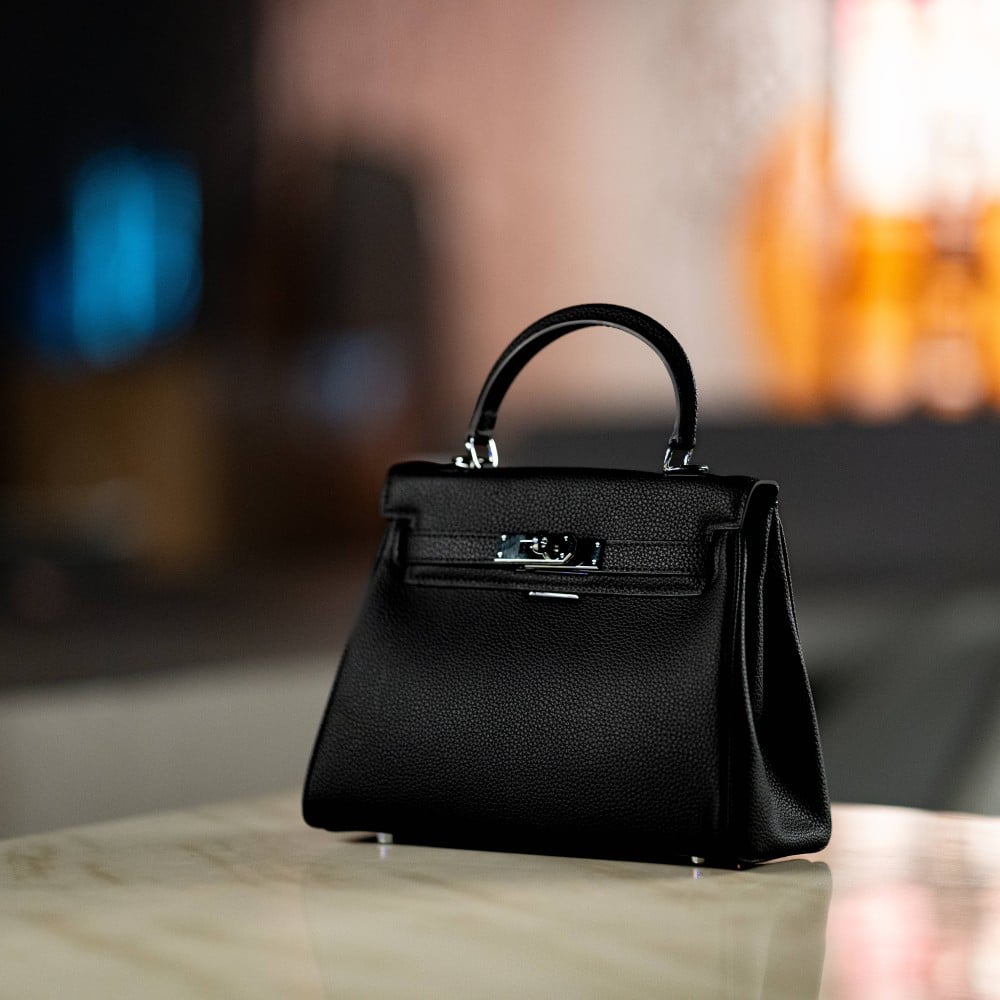 تتألق حقيبة هيرميس كيلي بتفاصيلها الدقيقة، حيث تأتي مزودة بمقبض علوي أنيق وحزام كتف قابل للإزالة لتوفير خيارات حمل مريحة ومتعددة. كما تبرز جمالية التصميم من خلال الإكسسوارات المعدنية الجذابة وقفل الإغلاق الدوار الشهير ومفتاح القفل المخفي، وهي تفاصيل تضفي لمسة من الرقي وتضمن أمان محتوياتك.