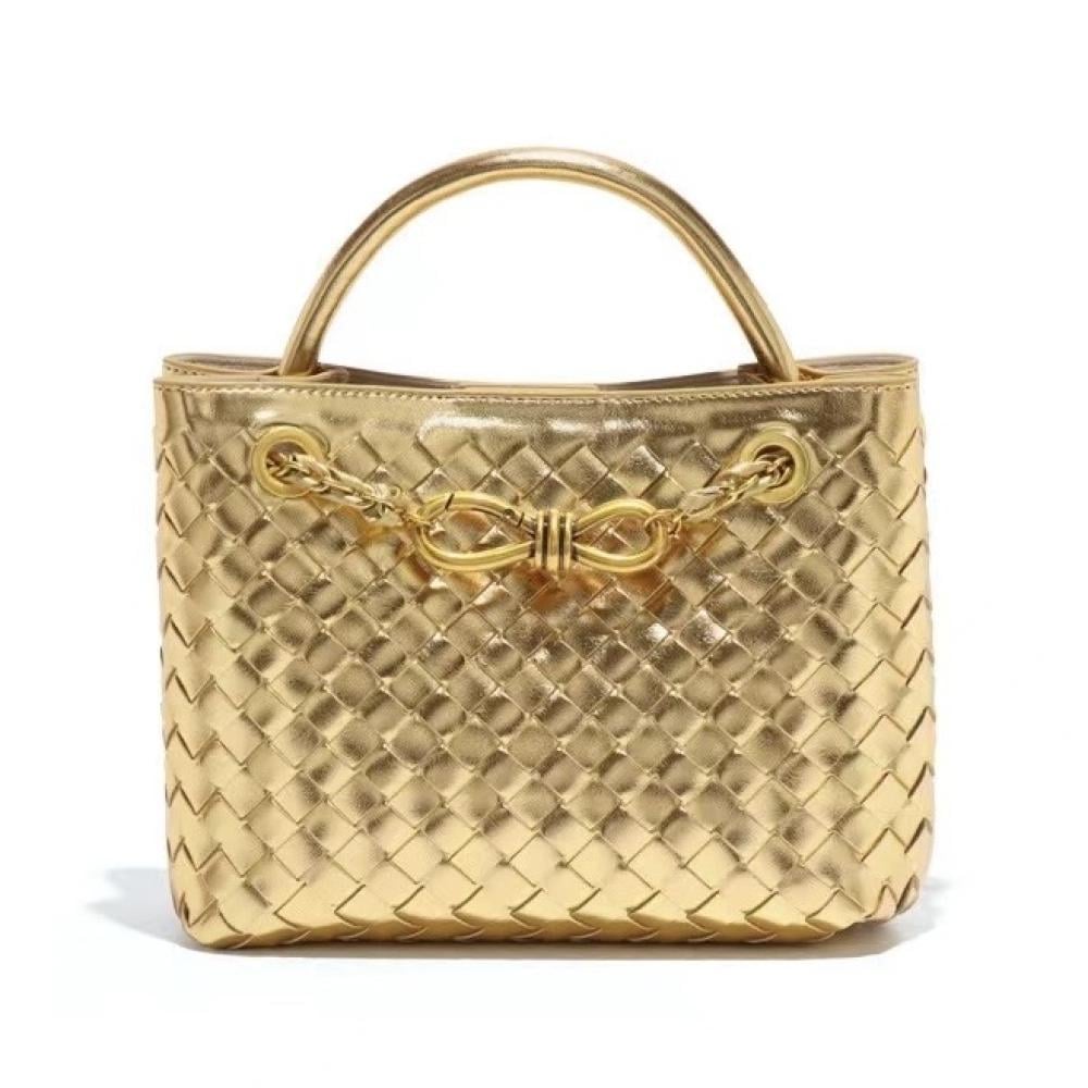 اقتني الآن بوتيغا انديامو ذهبي وتمتعي بحقيبة تجمع بين الفخامة والجمال ضمن أفضل شنط بوتيغا لهذا الموسم.